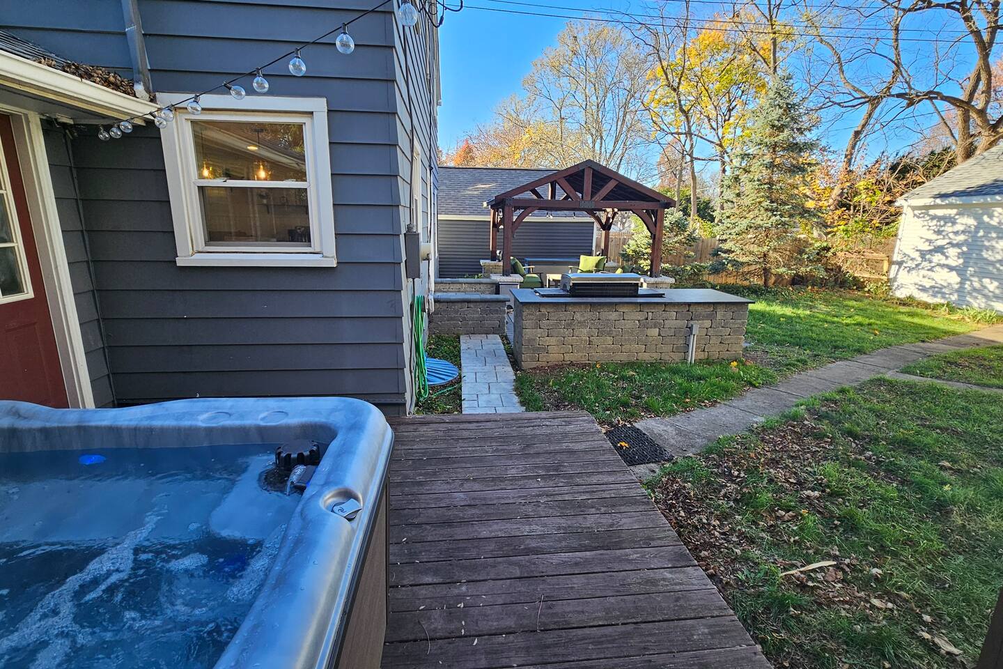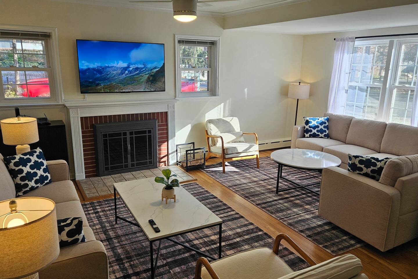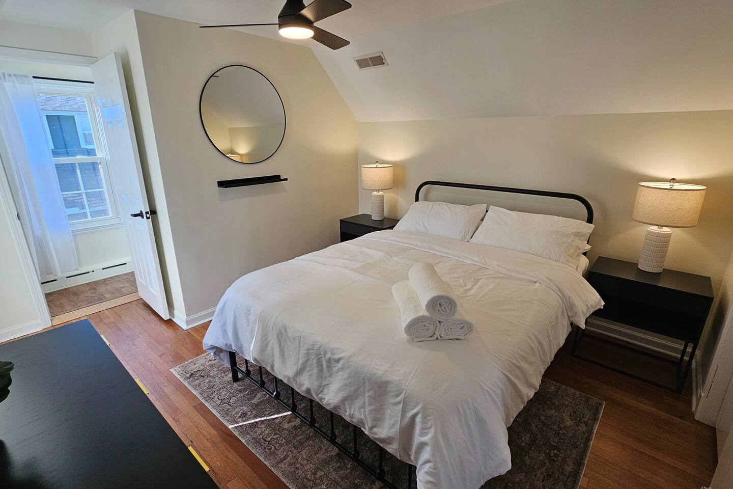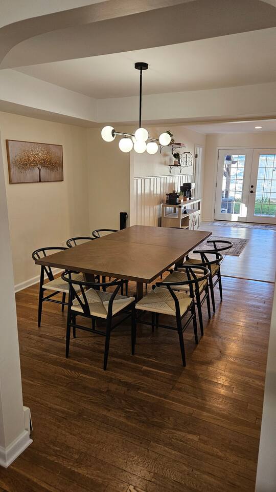 7 mi (14 min) to The Ohio State University campus 11 mi (20 min) to Columbus Zoo 9 mi (14 min) to Short North/Downtown/Convention Center 7 mi (13 min) to Polaris Fashion Mall 9 mi (14 min) to Nationwide Arena 6 mi (16 min) to Schottenstein Center 4 mi (11 min) to Riverside Hospital 10 mi (15 min) to Grant Medical Center 9 mi (18 min) to OSU Medical Center 10 mi (14 min) to Nationwide Children's Hospital OUR HOME • Very spacious interior • Outdoor entertainment area • Smart Lock for easy, secure access • Smart thermostats • Central air conditioning for year-round comfort • Smart Tv’s KITCHEN • Keurig pod & Mr. Coffee drip machines • Nespresso machine • Coffee bar: k-cups, creamer, sugar, filters • Electric range • Microwave • Dishwasher (pods provided) • Pots and pans • Drinking glasses • Coffee mugs • Wine glasses • Silverware and knives DINING • Indoor seating for 8 • Outdoor seating and entertainment area LIVING ROOM • 55" Smart TV • Large sectional sofa • 3-person sofa • Board games MASTER SUITE • King size bed • Ceiling fan • Bedside lamps with outlets • 6-drawer dresser • Private full bath • Closet with hangers BEDROOM 2 • King size bed • Ceiling fan • Bedside lamps with outlets • 6-drawer dresser • Closet with hangers BEDROOM 3 • Queen size bed • Ceiling fan • Bedside lamps with outlets • 6-drawer dresser • Private full bath • Closet with hangers BEDROOM 4 • Queen size bed • Ceiling fan • Bedside lamps with outlets • 6-drawer dresser • Closet with hangers HALLWAY BATHROOM • Tub/shower combo • Handicap accessible hand-rails • Bath towels, hand towels, washcloths provided • Hand soap provided BASEMENT GUEST SUITE • Living room area • Full kitchen • Private bedroom • Full bath with shower • Washer & Dryer • Bath towels, hand towels, washcloths provided • Hand soap provided LAUNDRY ROOM • Full size washer & dryer • Detergent and dryer sheets provided BACKYARD • 6-person hot tub • Outdoor propane grill (propane provided) • Firepit with Adirondack chairs • Gazebo with seating area • Fenced-in Backyard UPGRADES ✨ Want to level up your stay? Add-ons available with prior approval. Payment via Airbnb Resolution Center. 🧳 Early Check-In: $15/hour (pending availability) 😴 Late Check-Out: $15/hour (pending availability) 🐶 Dog-Friendly: $35/dog/night with a $200 maximum per stay (<30 days)