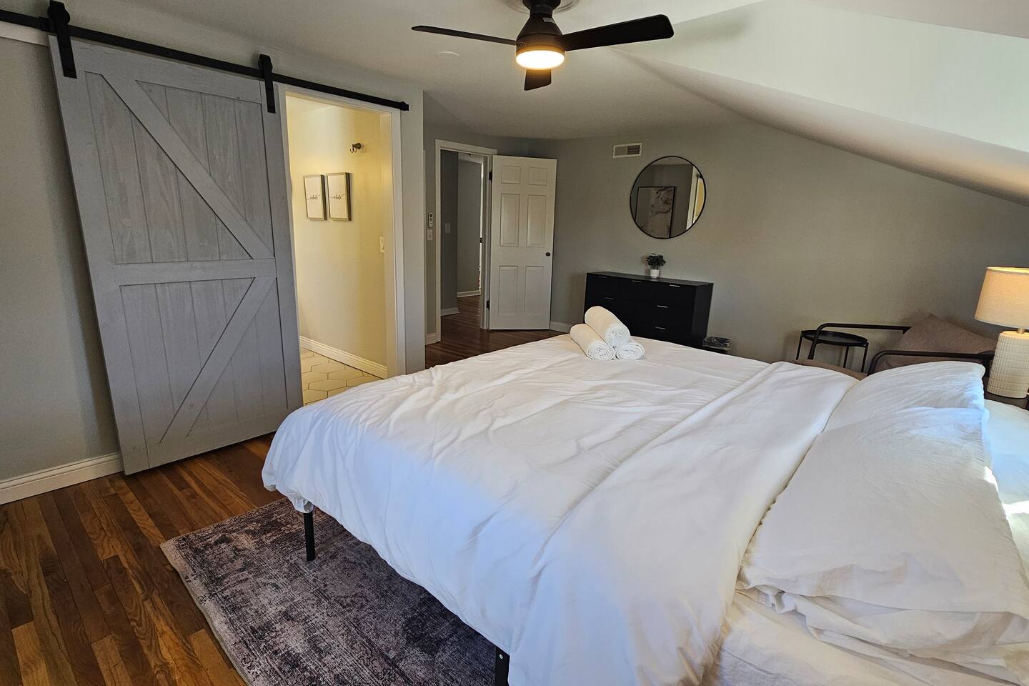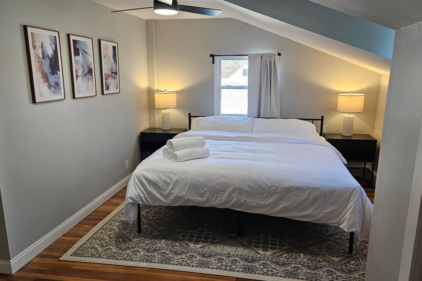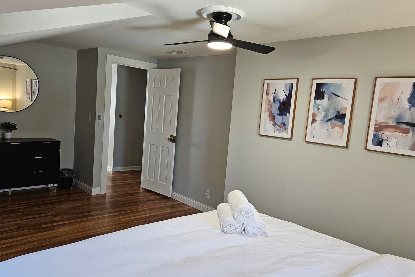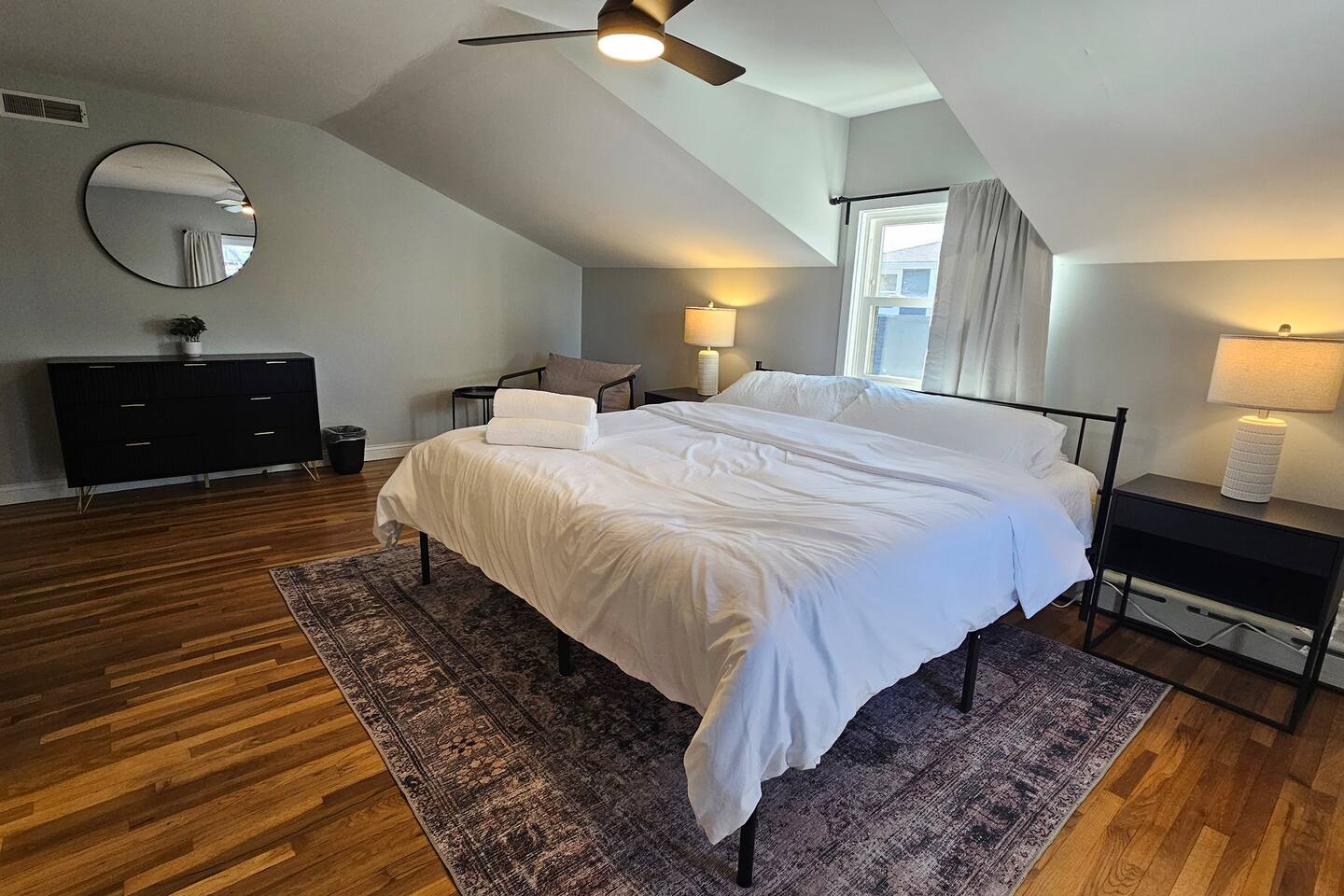 7 mi (14 min) to The Ohio State University campus 11 mi (20 min) to Columbus Zoo 9 mi (14 min) to Short North/Downtown/Convention Center 7 mi (13 min) to Polaris Fashion Mall 9 mi (14 min) to Nationwide Arena 6 mi (16 min) to Schottenstein Center 4 mi (11 min) to Riverside Hospital 10 mi (15 min) to Grant Medical Center 9 mi (18 min) to OSU Medical Center 10 mi (14 min) to Nationwide Children's Hospital OUR HOME • Very spacious interior • Outdoor entertainment area • Smart Lock for easy, secure access • Smart thermostats • Central air conditioning for year-round comfort • Smart Tv’s KITCHEN • Keurig pod & Mr. Coffee drip machines • Nespresso machine • Coffee bar: k-cups, creamer, sugar, filters • Electric range • Microwave • Dishwasher (pods provided) • Pots and pans • Drinking glasses • Coffee mugs • Wine glasses • Silverware and knives DINING • Indoor seating for 8 • Outdoor seating and entertainment area LIVING ROOM • 55" Smart TV • Large sectional sofa • 3-person sofa • Board games MASTER SUITE • King size bed • Ceiling fan • Bedside lamps with outlets • 6-drawer dresser • Private full bath • Closet with hangers BEDROOM 2 • King size bed • Ceiling fan • Bedside lamps with outlets • 6-drawer dresser • Closet with hangers BEDROOM 3 • Queen size bed • Ceiling fan • Bedside lamps with outlets • 6-drawer dresser • Private full bath • Closet with hangers BEDROOM 4 • Queen size bed • Ceiling fan • Bedside lamps with outlets • 6-drawer dresser • Closet with hangers HALLWAY BATHROOM • Tub/shower combo • Handicap accessible hand-rails • Bath towels, hand towels, washcloths provided • Hand soap provided BASEMENT GUEST SUITE • Living room area • Full kitchen • Private bedroom • Full bath with shower • Washer & Dryer • Bath towels, hand towels, washcloths provided • Hand soap provided LAUNDRY ROOM • Full size washer & dryer • Detergent and dryer sheets provided BACKYARD • 6-person hot tub • Outdoor propane grill (propane provided) • Firepit with Adirondack chairs • Gazebo with seating area • Fenced-in Backyard UPGRADES ✨ Want to level up your stay? Add-ons available with prior approval. Payment via Airbnb Resolution Center. 🧳 Early Check-In: $15/hour (pending availability) 😴 Late Check-Out: $15/hour (pending availability) 🐶 Dog-Friendly: $35/dog/night with a $200 maximum per stay (<30 days)