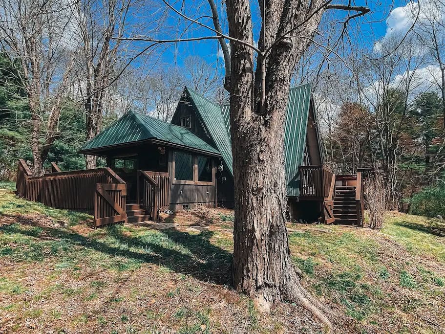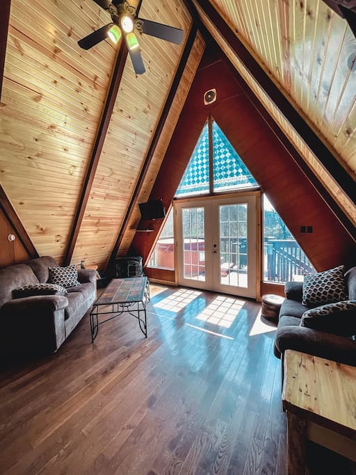 Rustic A-frame + Hot Tub + Fireplace + Pond