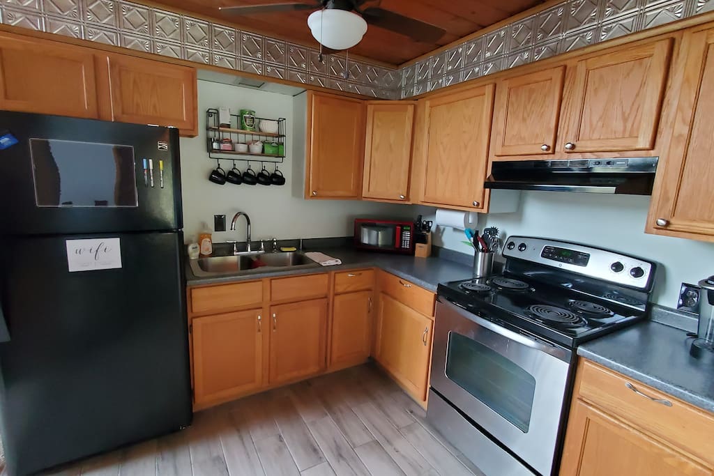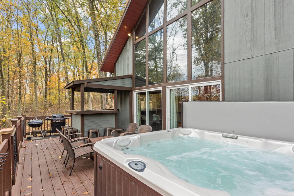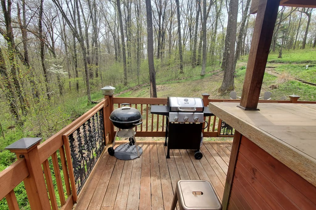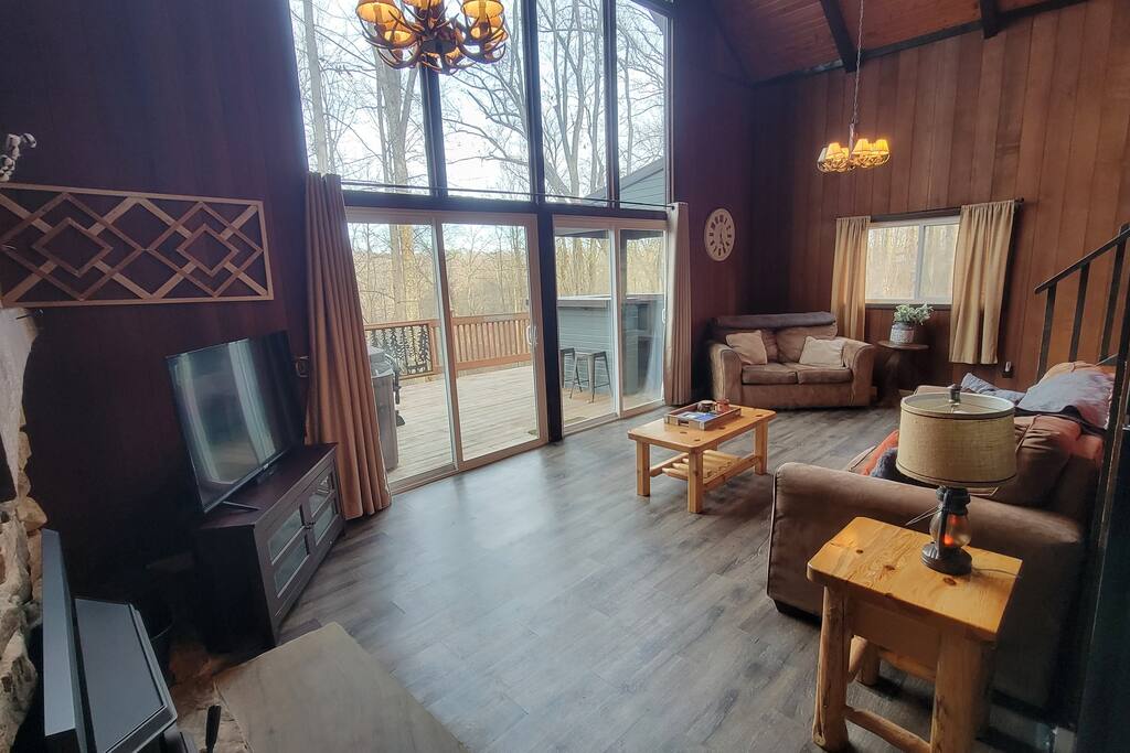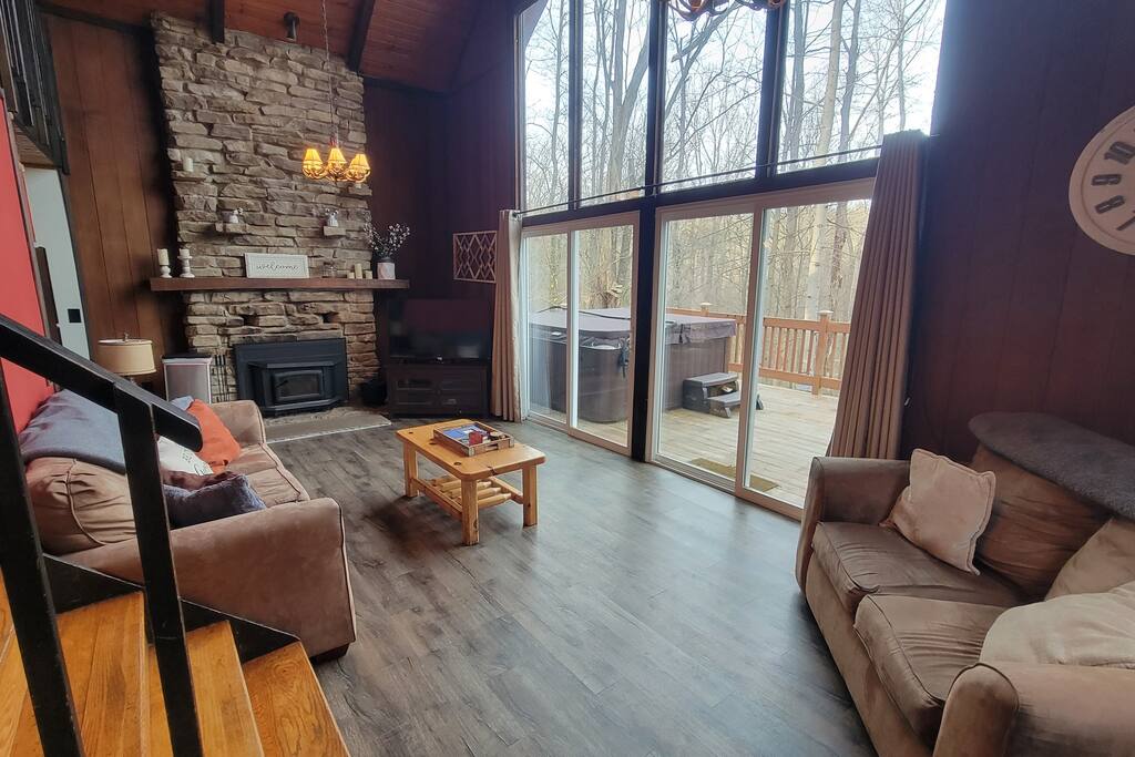 Cantwell Cliffs - 9 miles Hocking Hills Canopy Tours - 12 miles Conkles Hollow - 14 miles Old Man's Cave - 16 miles Hocking Hills State Park - 17 miles Cedar Falls - 18 miles OUR HOME • Authentic Great Wolf Lodge furniture items throughout • Fast Wifi • Smart Lock for easy, secure access • Smart thermostats • Central air conditioning for year-round comfort • Smart TVs KITCHEN • Keurig pod & Mr. Coffee drip machines • Coffee bar: k-cups, creamer, sugar, filters • Electric range • Microwave • Pots and pans • Drinking glasses • Wine glasses • Silverware and knives DINING • Indoor seating for 6 LIVING ROOM • 55" Smart TV • Large sofa • 1 love seat • Indoor fireplace stove • DVD player • Board games MASTER LOFT BEDROOM • King size bed • 47" Smart TV • Private full bath • Bedside lamps • Closet • DVD player • Reading nook BEDROOM 2 • Queen size bed • 47" Smart TV • Bedside lamps & String lights • Closet • DVD player BEDROOM 3 • Queen size bed • 6-drawer dresser • Dimmable lamp DECK • HUGE 7-person hot tub • Outdoor propane grill (propane provided) • Tiki Bar • Outdoor tables with seating BACKYARD • Wood firepit with seating • 2 acres for yard games & exploring UPGRADES ✨ Want to level up your stay? Add-ons available with prior approval. Payment via Airbnb Resolution Center. 🧳 Early Check-In: $15/hour (pending availability) 😴 Late Check-Out: $15/hour (pending availability) 🐶 Dog-Friendly: $50/dog/night with a $200 maximum per stay