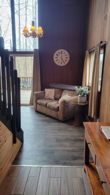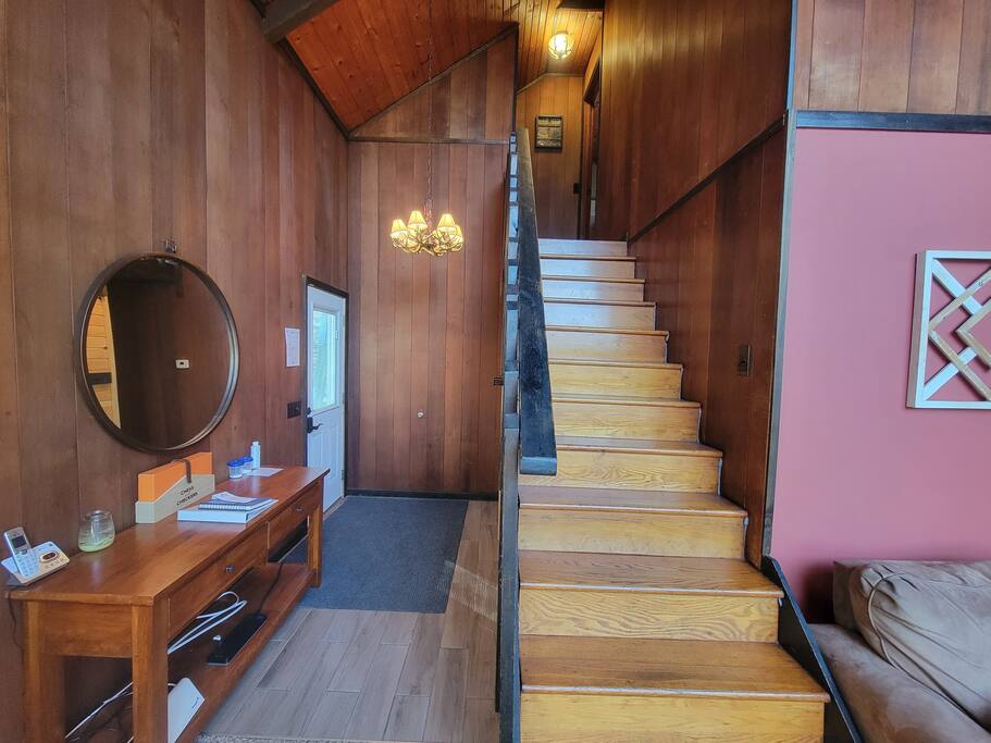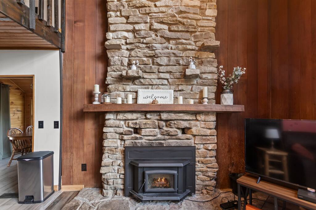 • Hot tub with incredible wooded view • Cozy indoor fireplace stove • Outdoor firepit with seating for 6 • 3 bedrooms & 2 full bathrooms • Fully stocked kitchen • Private community lake access Arriving early in the day or leaving late? Ask us about our add-ons, if our calendar allows it.