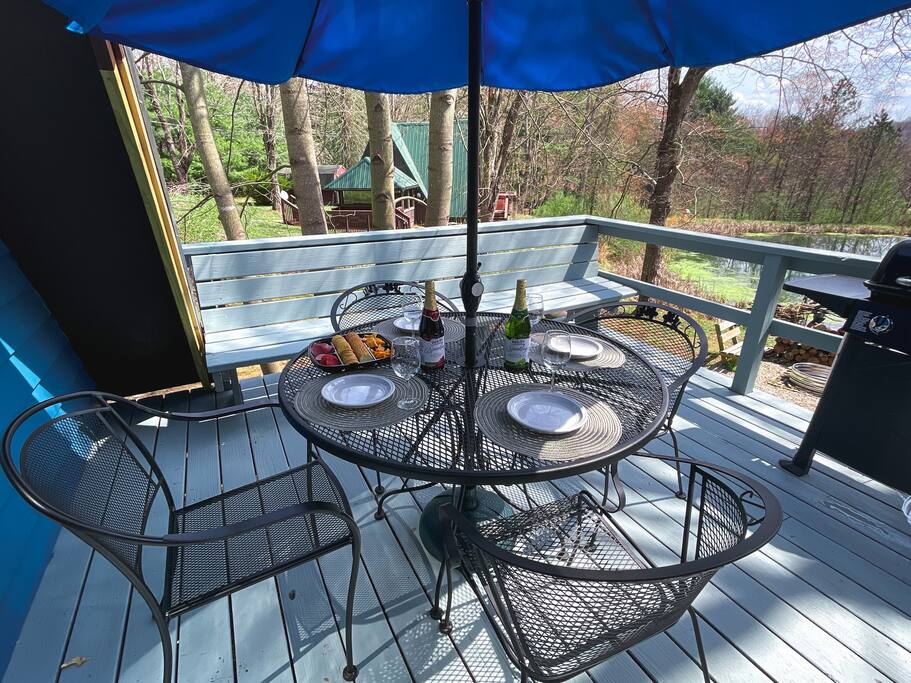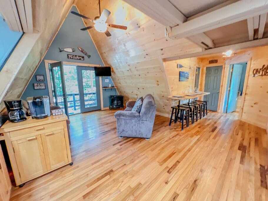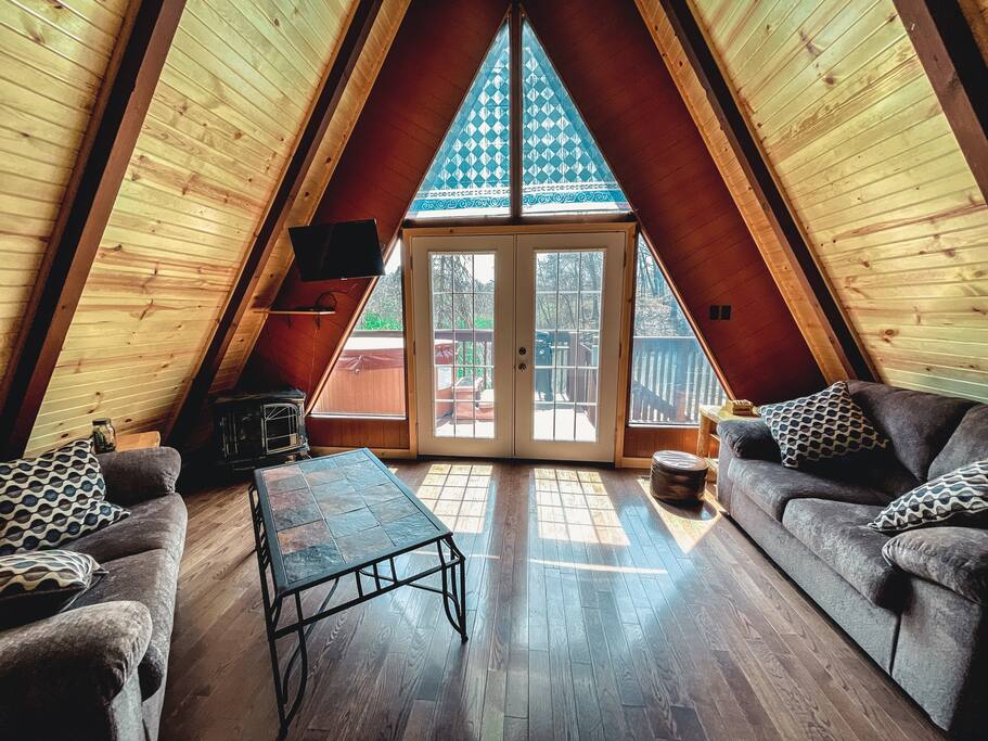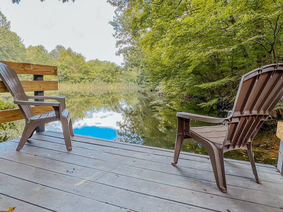 Nestled upon a private pond, enjoy the unique spaces and amenities provided by each of the three A-frames. Run about the entire property with fishing poles for catch and release fishing, visit each other around the fire pits, or star gaze while enjoying the hot tubs. Each cabin comes equipped with: ◉ Hot tubs ◉ Fireplace ◉ Full Kitchen ◉ Propane Grill (propane provided) ◉ Full bath ◉ Fire pit ◉ Outdoor seating ◉ Smart Tv ◉ Internet/Wi-Fi ◉ Contact-free entry ◉ Row boat The Lake Life Cabin: ◉ Sleeps 6-7 ◉ 2 bedrooms (queen size beds) ◉ 1 queen mattress in loft area ◉ 1 full size bean bag bed ◉ 1 bathroom The Whispering Waters Cabin: ◉ Sleeps 4 ◉ 1 queen bed in loft area ◉ 1 double bed in main level bedroom ◉ 1 bathroom The Edgewater Escape Cabin: ◉ Sleeps 4-6 ◉ 1 queen bed in main level bedroom ◉ 2 double bed futons in loft area ◉ 1 bathroom Come and enjoy the great Hocking Hills with your own private retreat to share with your family and friends!