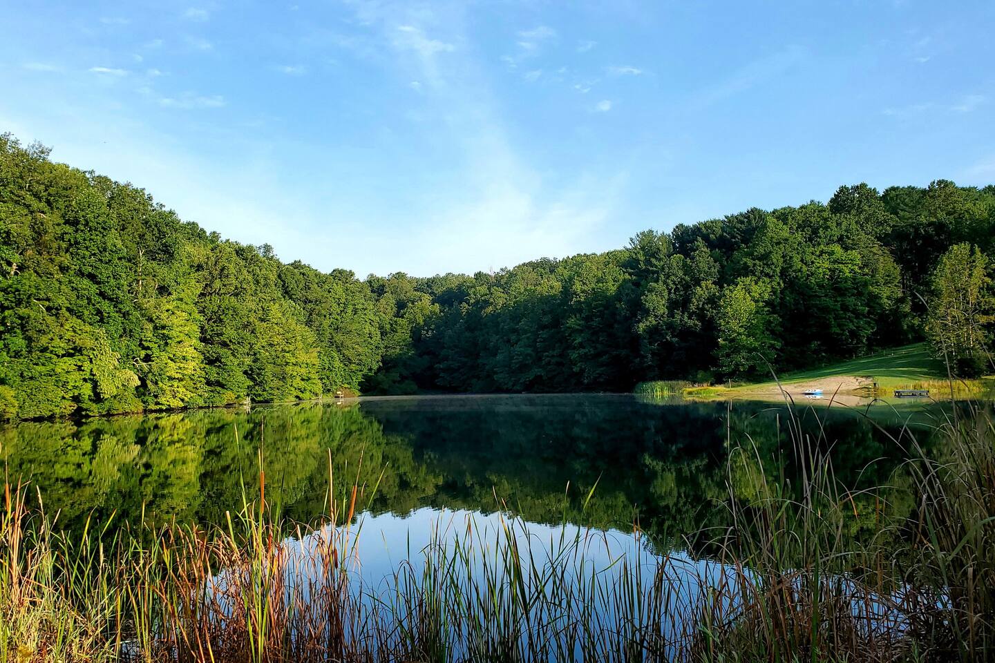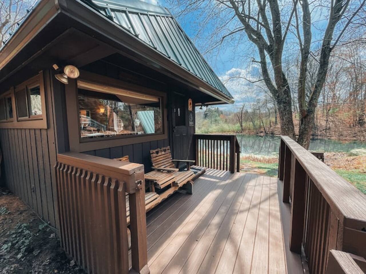 Come visit the beautiful Edgewater Escape cabin where you can create unforgettable memories with your family and friends. Enjoy the newly updated cabin that welcomes you right inside the front door. Drink your coffee (Keurig and Pods provided) each morning on the deck watching the wildlife waking up on the pond. Get up close and connect with nature on the rowboat or catch and release fishing (bring your own gear!). Cozy up under the stars at the firepit, while roasting marshmallows and relishing each other’s company. After a long day of hiking on the beautiful trails at Hocking Hills, kick back and luxuriate in our hot tub while having your favorite beverage taking in the peacefulness of nature with gorgeous trees, a view of the woods, and a large outdoor green space. This 2-bedroom and 1 bath cabin includes a private bedroom on the main level with a queen size bed and a loft with two full size beds. Cook your meals in our fully equipped kitchen or grill out on the deck! Along with the private pond, you can also take advantage of a private lake and swimming area just a short distance away. Edgewater Escape is one of three A-frame cabins nestled around their own private pond and provides the perfect retreat for you, your family, and your guests! We can accommodate larger groups with our family of cabins, please contact us to learn more. There’s no better way to start your Hocking Hills getaway than here at Edgewater Escape!
