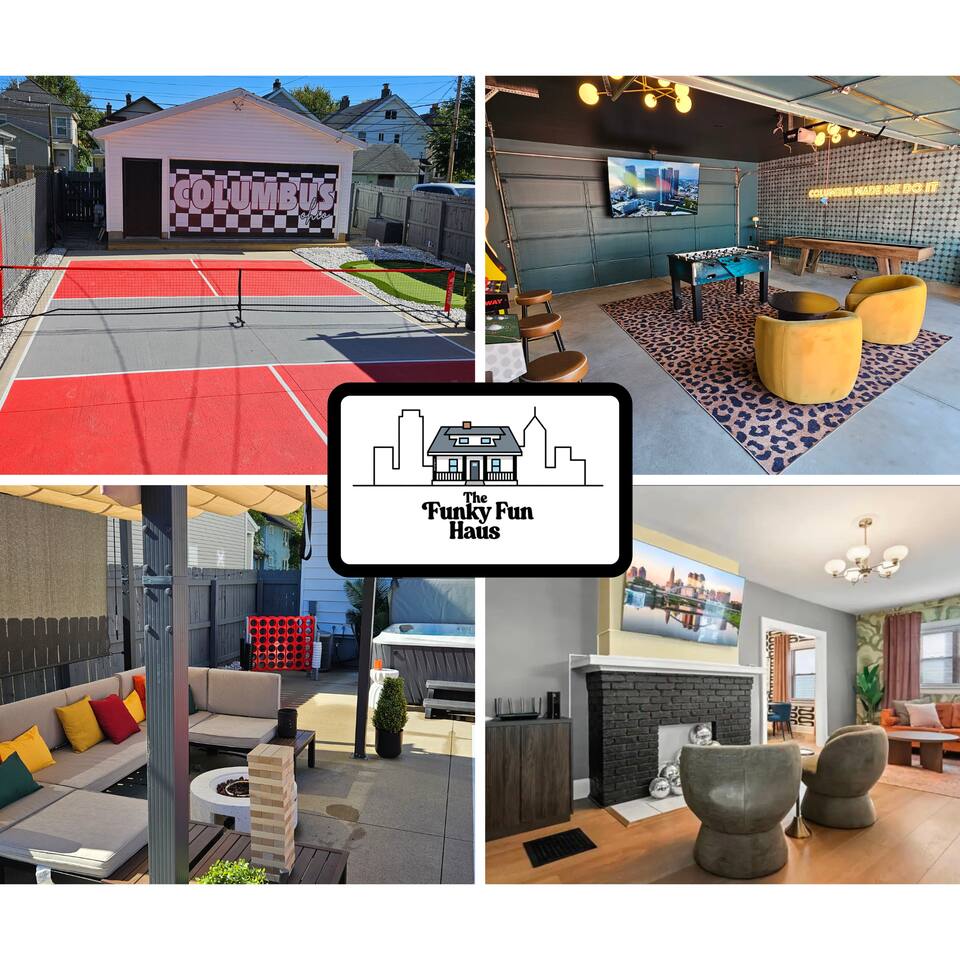 1 mi (4 min) to The Ohio State University campus 2 mi (5 min) to Short North/Downtown/Convention Center 2 mi (6 min) to Nationwide Arena 3 mi (11 min) to Schottenstein Center 20 mi (28 min) to Columbus Zoo OUR HOME • ULTIMATE entertainment space • Smart Lock for easy, secure access • Smart thermostat • Central air conditioning for year-round comfort • Smart Tvs throughout KITCHEN • Keurig pod & Mr. Coffee drip machines • French press & Pour over • Coffee bar: k-cups, creamer, sugar, filters • Gas range • Microwave • Dishwasher (pods provided) • Pots and pans • Drinking glasses • Coffee mugs • Wine glasses • Silverware and knives DINING • Indoor seating for 6 LIVING ROOM • 65" Smart TV • Large sectional sofa • Accent chairs • Throw blankets • Board games BEDROOM 1 • Queen size bed • Smart Tv • Full length mirror • Ceiling fan • Bedside lamps with outlets • Full closet with hangers BEDROOM 2 • Queen size bed • Smart Tv • Full length mirror • Seating area • Ceiling fan • Bedside lamps with outlets • Full closet with hangers BEDROOM 3 • Queen size bed • Smart Tv • Wall mirror • Ceiling fan • Bedside lamps with outlets • Full closet with hangers UPSTAIRS HALLWAY BATHROOM • Tub/shower combo • Bath towels, hand towels, washcloths provided • Shampoo, Conditioner, Bodywash, & Hand soap provided HALF BATH (Located off Kitchen) • Hand towel and Hand soap provided LAUNDRY (Located in upstairs hallway) • Combo washer & dryer • Detergent and dryer sheets provided GAME ROOM • 75" Smart Tv • Mini-split AC & Heat • 3 Arcades [PacMan, Golden Tee, Mortal Combat] • Foosball Table • Shuffle Board • Accent chairs BACKYARD • 7-8 person hot tub • Firepit with sectional seating • Pickleball Court • Putt-Putt Green • Cornhole Boards • Life-size Connect Four • 3ft Jinga • Outdoor propane grill (propane provided) • Fenced-in Backyard UPGRADES ✨ Want to level up your stay? Add-ons available with prior approval. Payment via Airbnb Resolution Center. 🧳 Early Check-In: $15/hour (pending availability) 😴 Late Check-Out: $15/hour (pending availability) 🐶 Dog-Friendly: $35/dog/night with a $200 maximum per stay (<30 days)