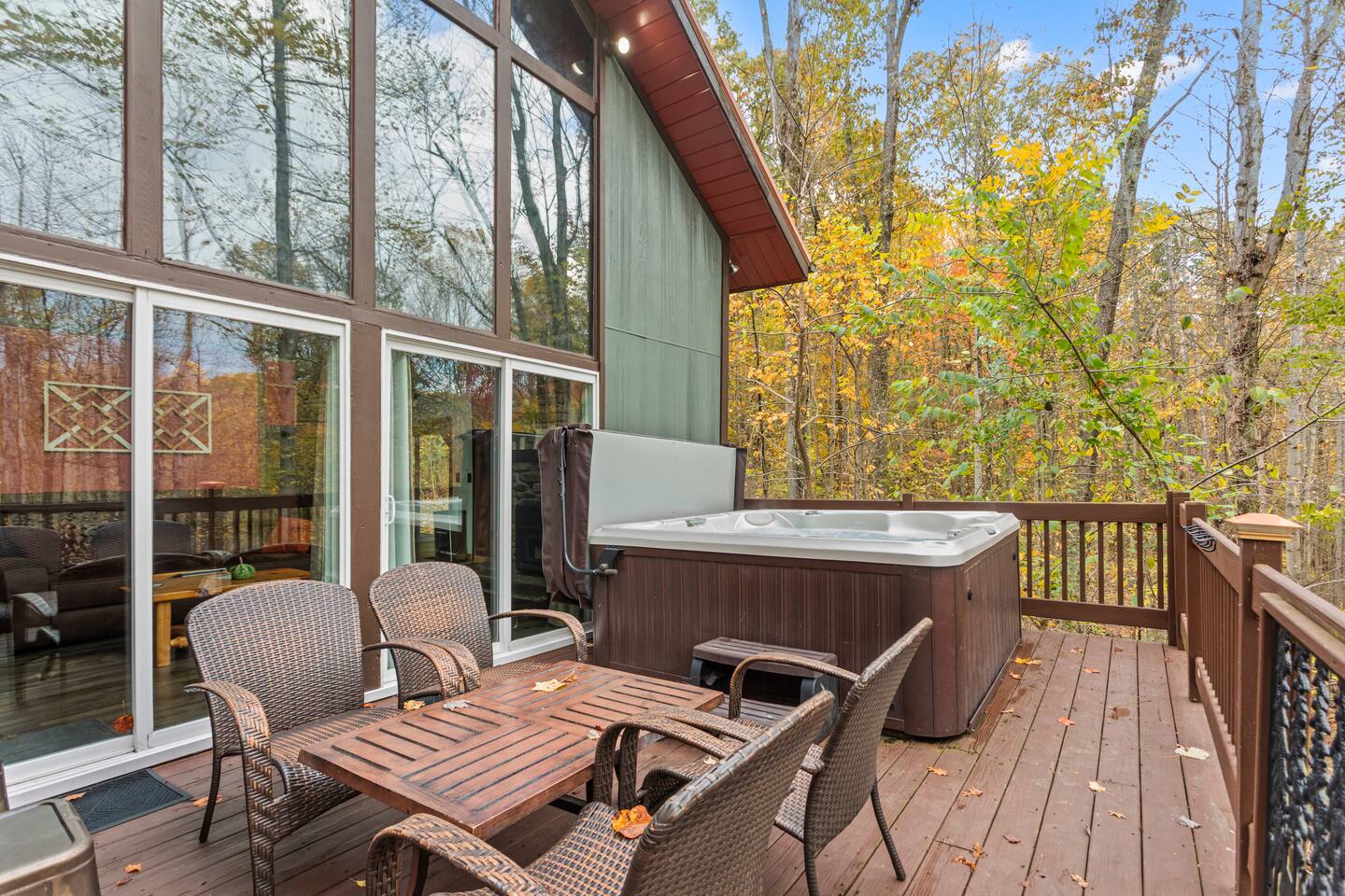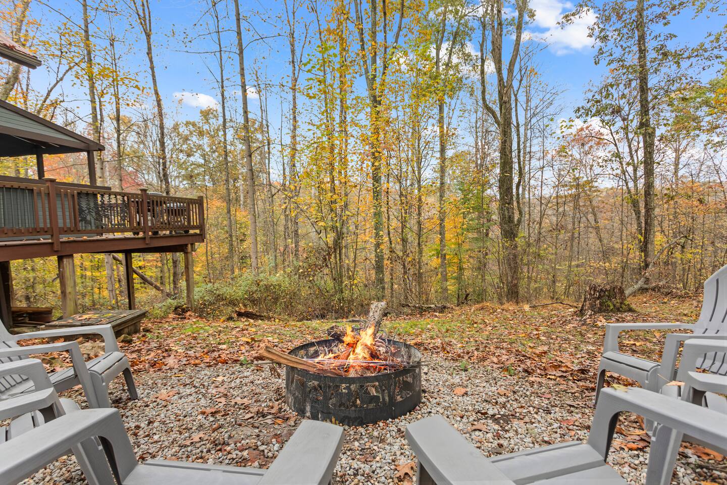• Hot tub with incredible wooded view • Cozy indoor fireplace stove • Outdoor firepit with seating for 6 • 3 bedrooms & 2 full bathrooms • Fully stocked kitchen • Private community lake access Arriving early in the day or leaving late? Ask us about our add-ons, if our calendar allows it.