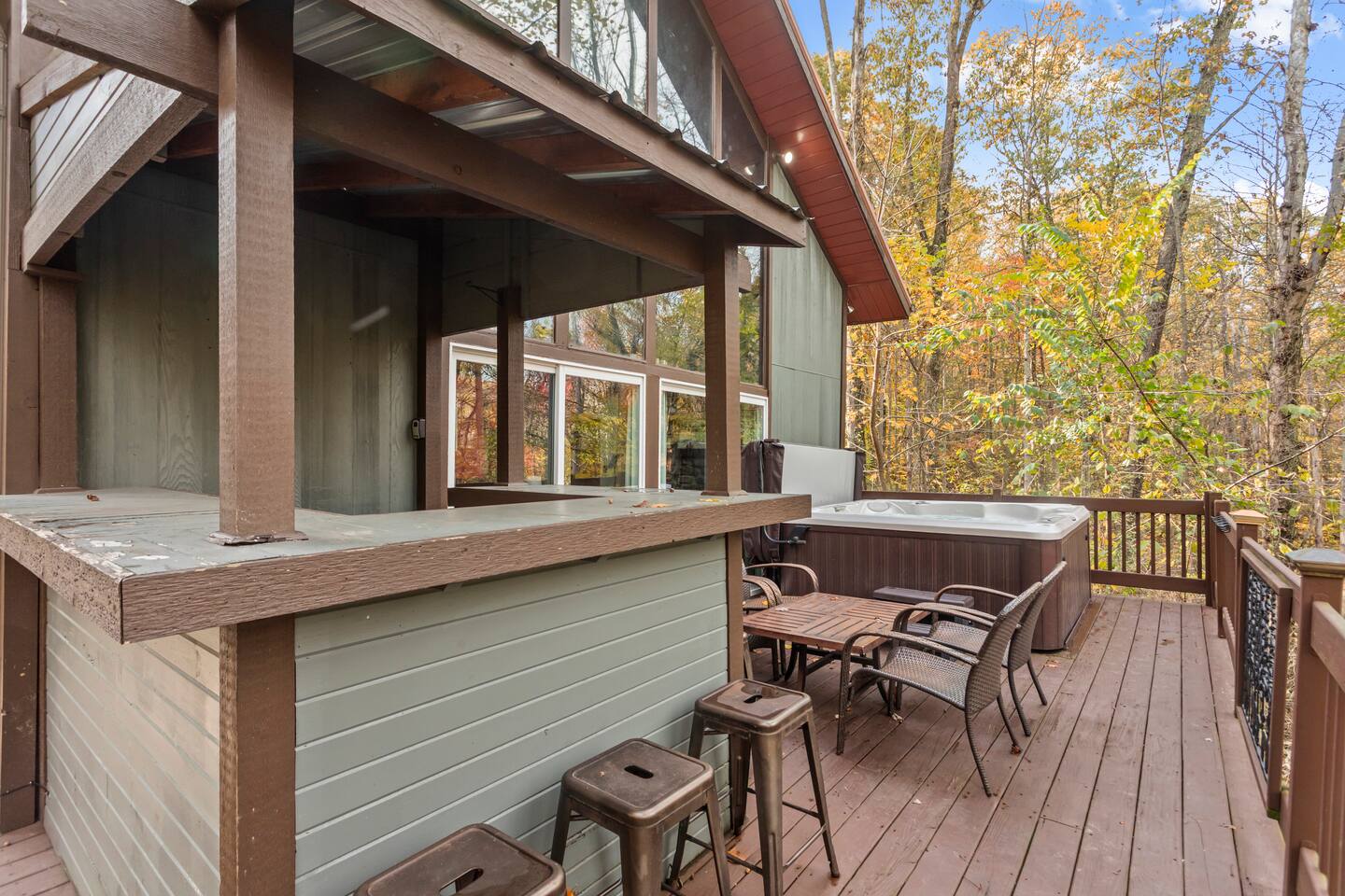 Cantwell Cliffs - 9 miles Hocking Hills Canopy Tours - 12 miles Conkles Hollow - 14 miles Old Man's Cave - 16 miles Hocking Hills State Park - 17 miles Cedar Falls - 18 miles OUR HOME • Authentic Great Wolf Lodge furniture items throughout • Fast Wifi • Smart Lock for easy, secure access • Smart thermostats • Central air conditioning for year-round comfort • Smart TVs KITCHEN • Keurig pod & Mr. Coffee drip machines • Coffee bar: k-cups, creamer, sugar, filters • Electric range • Microwave • Pots and pans • Drinking glasses • Wine glasses • Silverware and knives DINING • Indoor seating for 6 LIVING ROOM • 55" Smart TV • Large sofa • 1 love seat • Indoor fireplace stove • DVD player • Board games MASTER LOFT BEDROOM • King size bed • 47" Smart TV • Private full bath • Bedside lamps • Closet • DVD player • Reading nook BEDROOM 2 • Queen size bed • 47" Smart TV • Bedside lamps & String lights • Closet • DVD player BEDROOM 3 • Queen size bed • 6-drawer dresser • Dimmable lamp DECK • HUGE 7-person hot tub • Outdoor propane grill (propane provided) • Tiki Bar • Outdoor tables with seating BACKYARD • Wood firepit with seating • 2 acres for yard games & exploring UPGRADES ✨ Want to level up your stay? Add-ons available with prior approval. Payment via Airbnb Resolution Center. 🧳 Early Check-In: $15/hour (pending availability) 😴 Late Check-Out: $15/hour (pending availability) 🐶 Dog-Friendly: $50/dog/night with a $200 maximum per stay