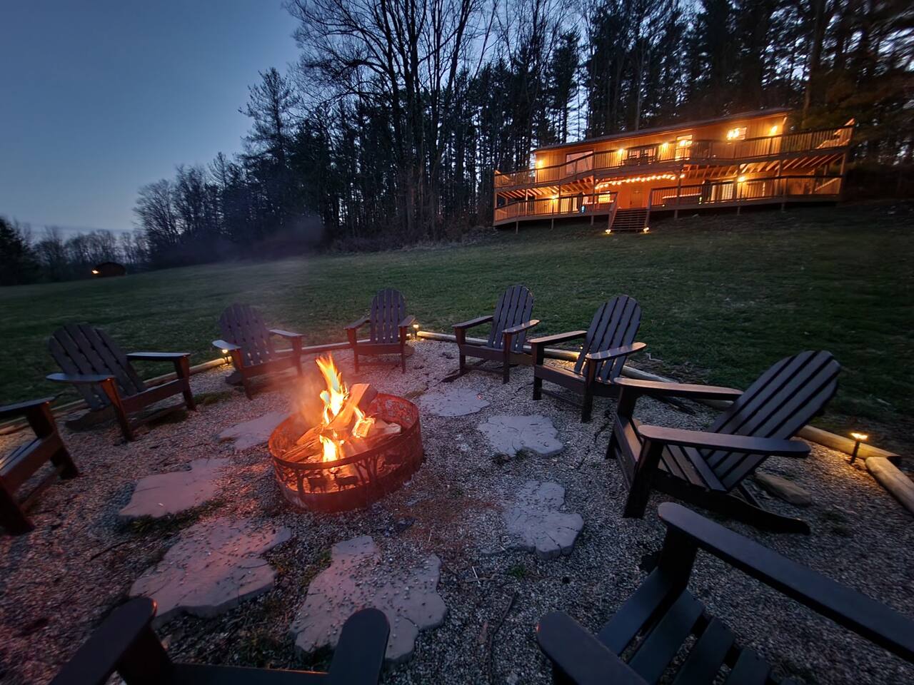 Cantwell Cliffs - 8 miles Hocking Hills Canopy Tours - 11 miles Conkles Hollow - 13 miles Old Man's Cave - 15 miles Hocking Hills State Park - 16 miles Cedar Falls - 17 miles OUR HOME • Authentic Great Wolf Lodge furniture items throughout • Smart Lock for easy, secure access • Smart thermostats • Central air conditioning for year-round comfort • Smart TVs in every room KITCHEN • Keurig pod & Mr. Coffee drip machines • Coffee bar: k-cups, creamer, sugar, filters • Electric range • Microwave • Pots and pans • Drinking glasses • Wine glasses • Silverware and knives • Large island for meal prep • Lots of cabinets for storage DINING • Indoor seating for 12 • Outdoor dining tables with seating LIVING ROOM • 75" Smart TV • Large sofa • 2 love seats • 4 large leather chairs • Gas fireplace • DVD player • Board games MASTER SUITES • Queen size bed • 55" Smart TV • Ceiling fan • Dimmable lamps • 6-drawer dresser • DVD player • Private full bath BEDROOM 3 • Queen size bed • 55" Smart TV • Dimmable lamps • 6-drawer dresser • DVD player • Jack & Jill full bath • Coat closet BEDROOM 4 • Queen size bunk bed • 55" Smart TV • Dimmable lamp • Jack & Jill full bath • Coat closet BEDROOM 5 • Queen size bed • 55" Smart TV • Dimmable lamps • 6-drawer dresser • DVD player • Private full bath • Coat closet LAUNDRY (Located in Bedroom 4) • Full size washer & dryer • Detergent and dryer sheets provided DECK • Two 6-person hot tubs • Outdoor propane grill (propane provided) • Individual Adirondack chairs • Outdoor dining tables • Hook & Ring game near hot tubs BACKYARD • Wood firepit with seating • 2 acres for yard games & exploring UPGRADES ✨ Want to level up your stay? Add-ons available with prior approval. Payment via Airbnb Resolution Center. 🧳 Early Check-In: $15/hour (pending availability) 😴 Late Check-Out: $15/hour (pending availability) 🐶 Dog-Friendly: $35/dog/night with a $200 maximum per stay